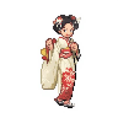 - a pixel image of woman with beautiful sakura kimono, on white background